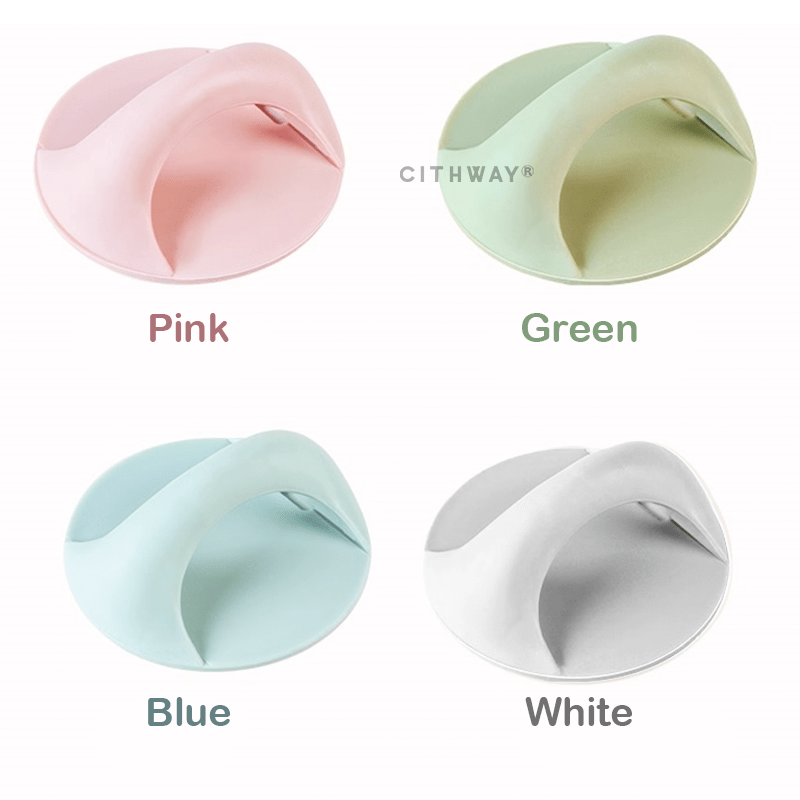 Hergestellt aus hochwertigem, ungiftigem Polypropylen (PP) mit starker selbstklebender Haftkraft. Es bietet außergewöhnliche Haltbarkeit und Robustheit, die den täglichen Belastungen und dem Öffnen und Schließen von Türen standhält, ohne zu brechen, zu rosten oder an Haftkraft zu verlieren. Dieser vielseitige, bohrfreie Möbelgriff verfügt über eine besonders glatte, polierte Oberfläche, sodass er ohne Kratzer oder Verletzungen mit den Händen berührt werden kann. Er ist in 4 verschiedenen auffälligen Farben erhältlich, die Sie stilvoll auf Ihre Türoberfläche abstimmen können. Erhältlich in den Farben Pink, Grün, Blau und Weiß!