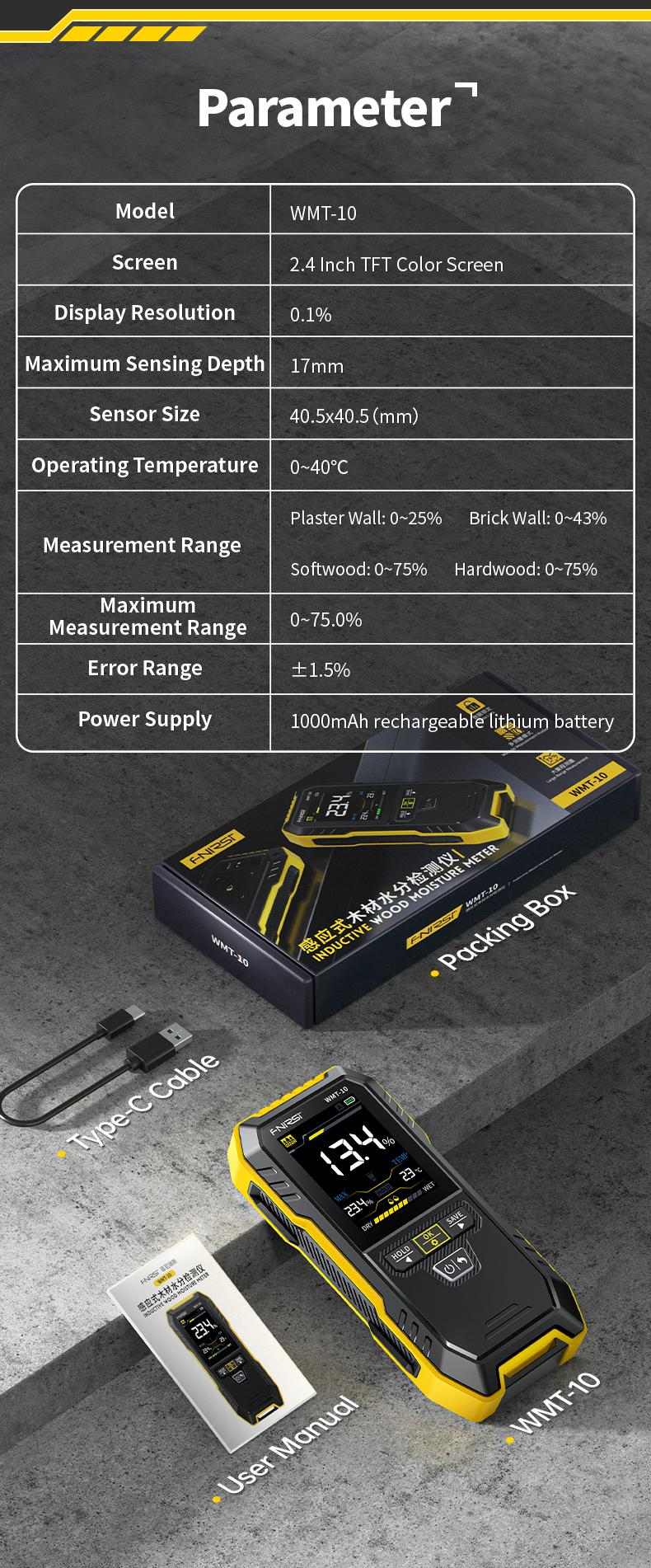 WMT-10 Wiederaufladbares Holzfeuchtemessgerät💦